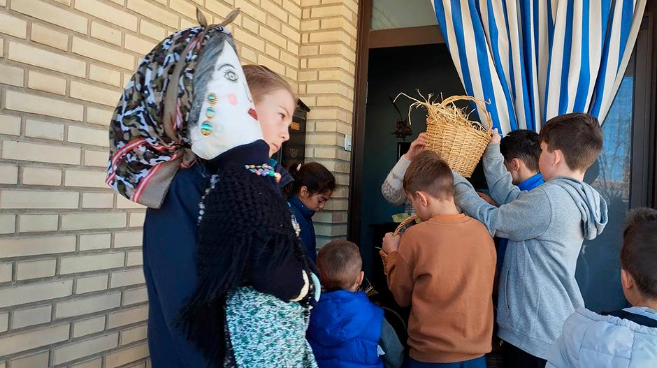 Niños y niñas, acompañados por sus mayores, han recorrido el pueblo con el pelele de la Vieja Remolona y sus cestas, entonando la canción popular y recolectando huevos de puerta en puerta. También han recogido dulces y pequeñas propinas.